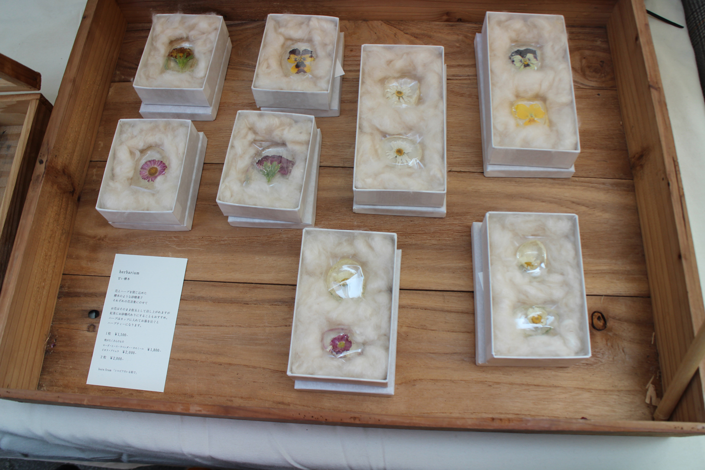 cineca(チネカ)という素敵なお菓子のお店もありました.左の石ころみたいなのはラムネで、右のお花の琥珀のようなものは飲み物に入れるお砂糖で、ハーブティーとしても楽しめます.
