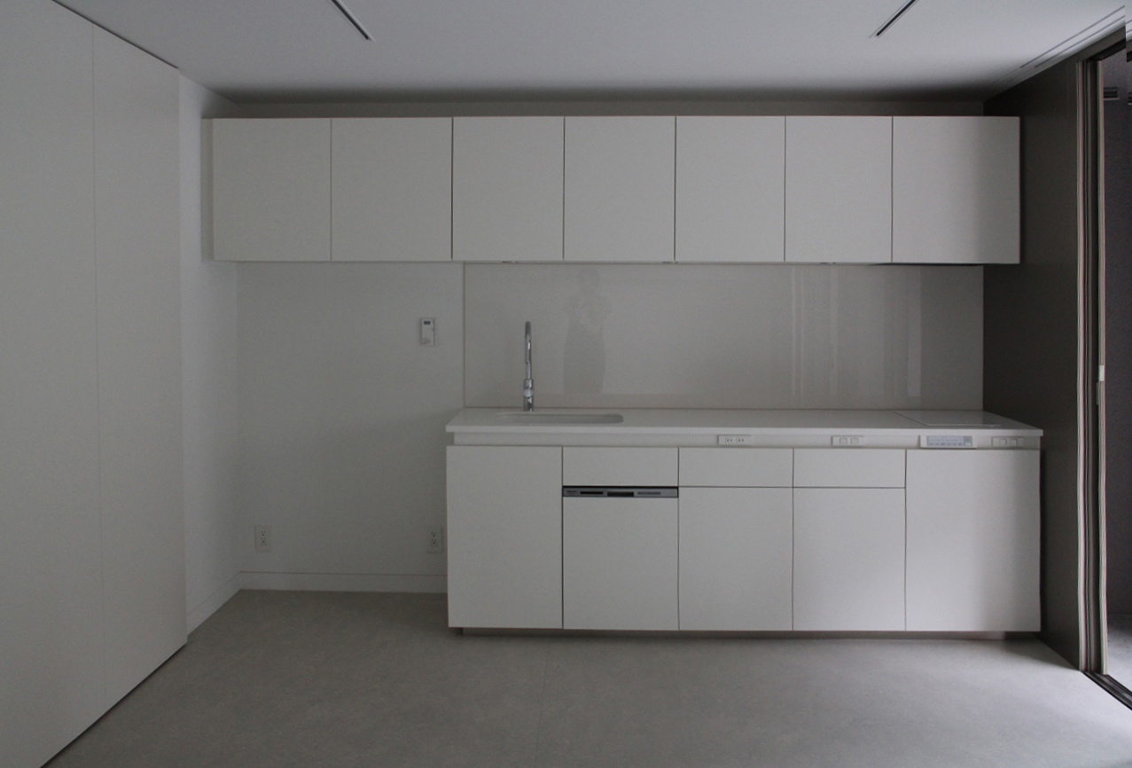 1Fは玄関と倉庫、施主が開催するキッチンスタジオのためのお部屋です.オフホワイトの空間です.