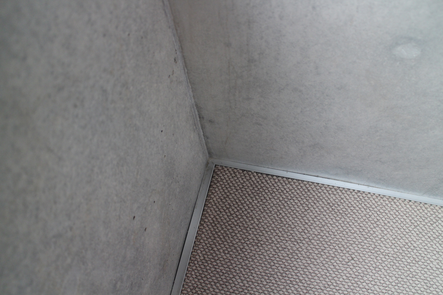 アルミアングルを使った見切りが壁側でなく床側についていました.壁がストンと落ちて、壁につけるよりもすっきりとした印象を受けます.