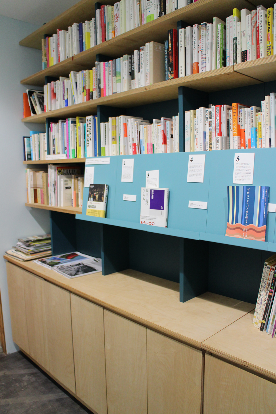 企画している勉強会の課題図書などを青い展示スペースに紹介しています.