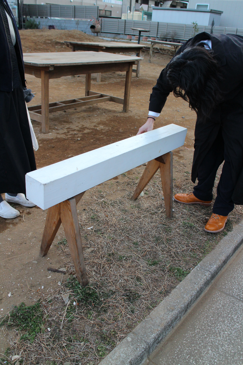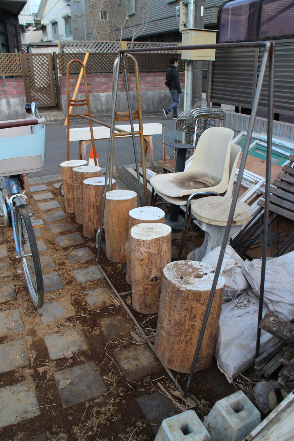 オリジナルの家具(デザインは芽衣ちゃんの彼の山形 陽平くん)は敷地のサクでもありベンチにもなります.