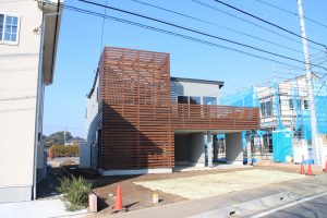 外壁・開口部分が前面に出ないようレッドシダーのスクリーンを設けています.