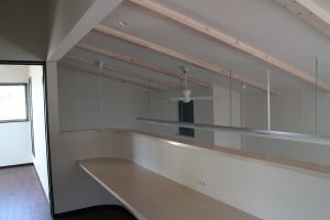 吹き抜け部分に張り出している机は、子供達(3人)の勉強スペースです.