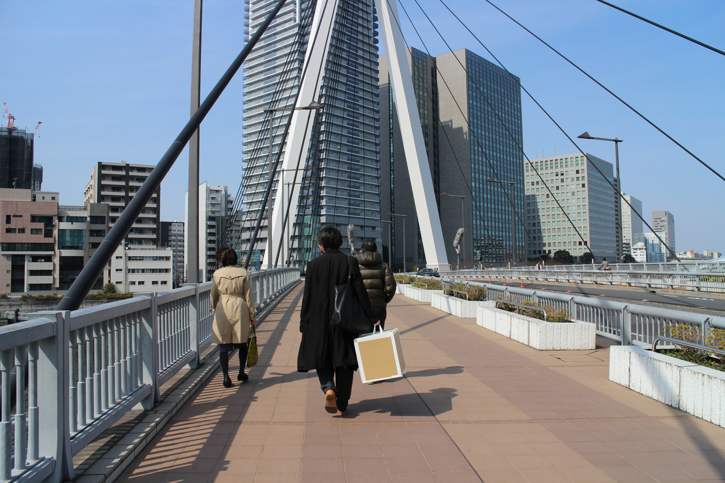 まずは、明祥ビル+Soiプロジェクトの打合せをお施主さん宅にて行いました.今回本見積をして、解体工事の結果、当初の想定より、設備や補修に予算を取られ、金額が高くなってしまったのですが、家賃での回収金額の期間の前提を少し調整し、予算を上げて頂きました.打合せの後は、お施主さんと一緒に現場へ、お施主さん宅は新川の隣の月島、佃に位置しているので、橋を渡って現場まで向かいます.本日は、すっかり暖かく、外を歩くのが気持ちがいい季節になりました.
