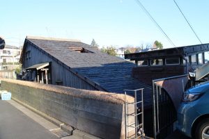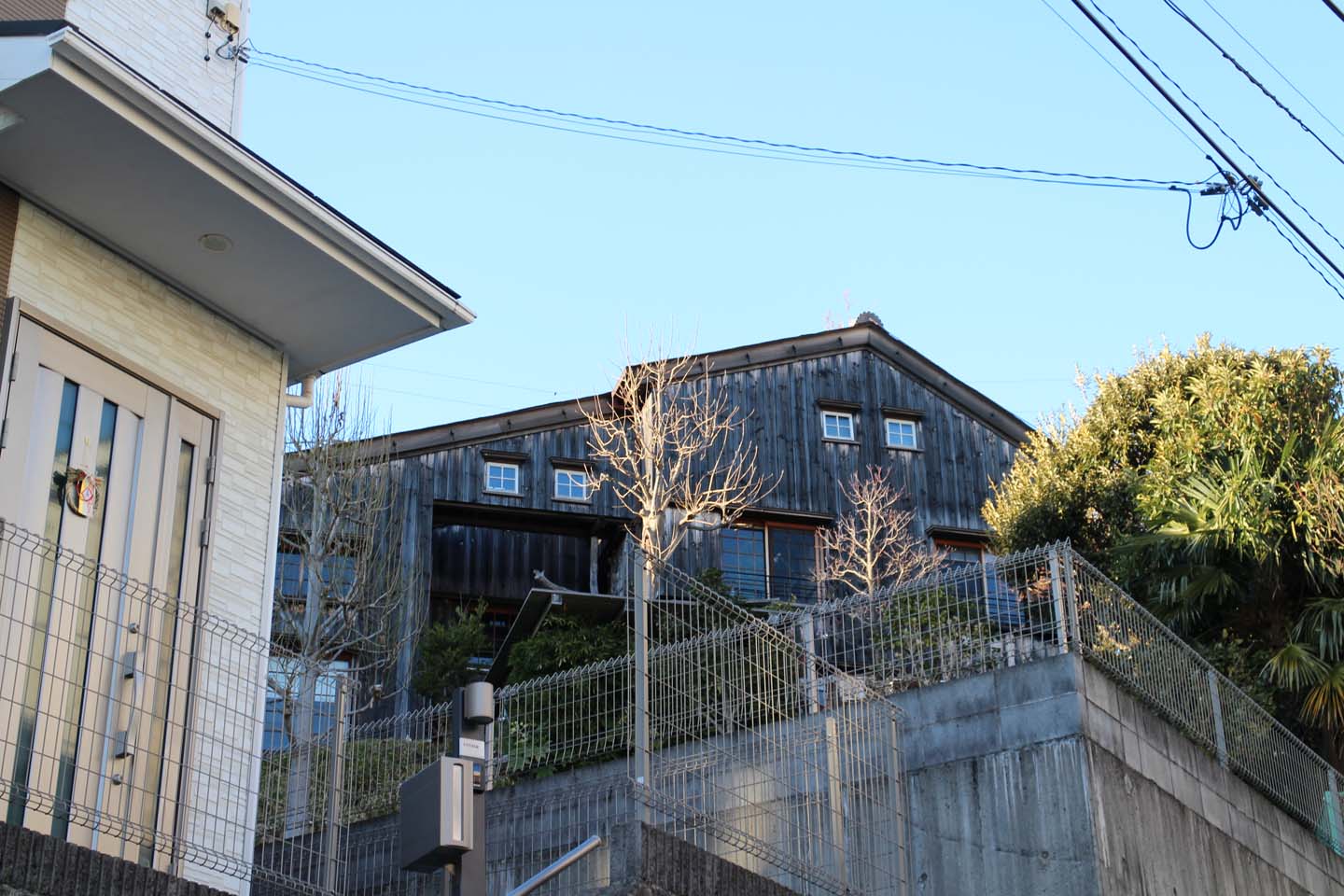 坂をぐるぐる回りながら下側からも覗いてみましたよ.残念な事にこんなに素晴らしい建築が現在、空き家なんだそうです、、、.