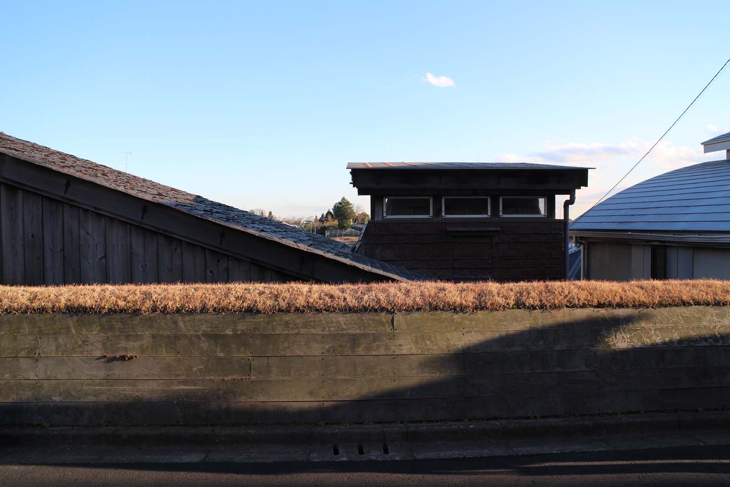 屋根は、既に銅板葺きに変わっていて、ニラは生えていませんでしたが、、、この塀と屋根の関係、ちょこっと飛び出す茶室のボリュームはとても素敵な建築でした!