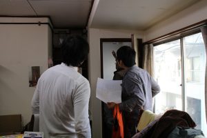 先日現調に伺った日暮里のビルの概算を取るために本日は、いつもお世話になっている躯体整形有限会社の井上さんに現場を見て頂きました.