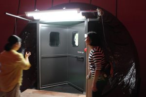これは、折り畳んで トラックで輸送できるように設計されている空気膜構造の建築です. 空気膜構造の外皮は輸送に適した軽量性を持った素材であり、同時に自由な形状をとることができるそうです.
