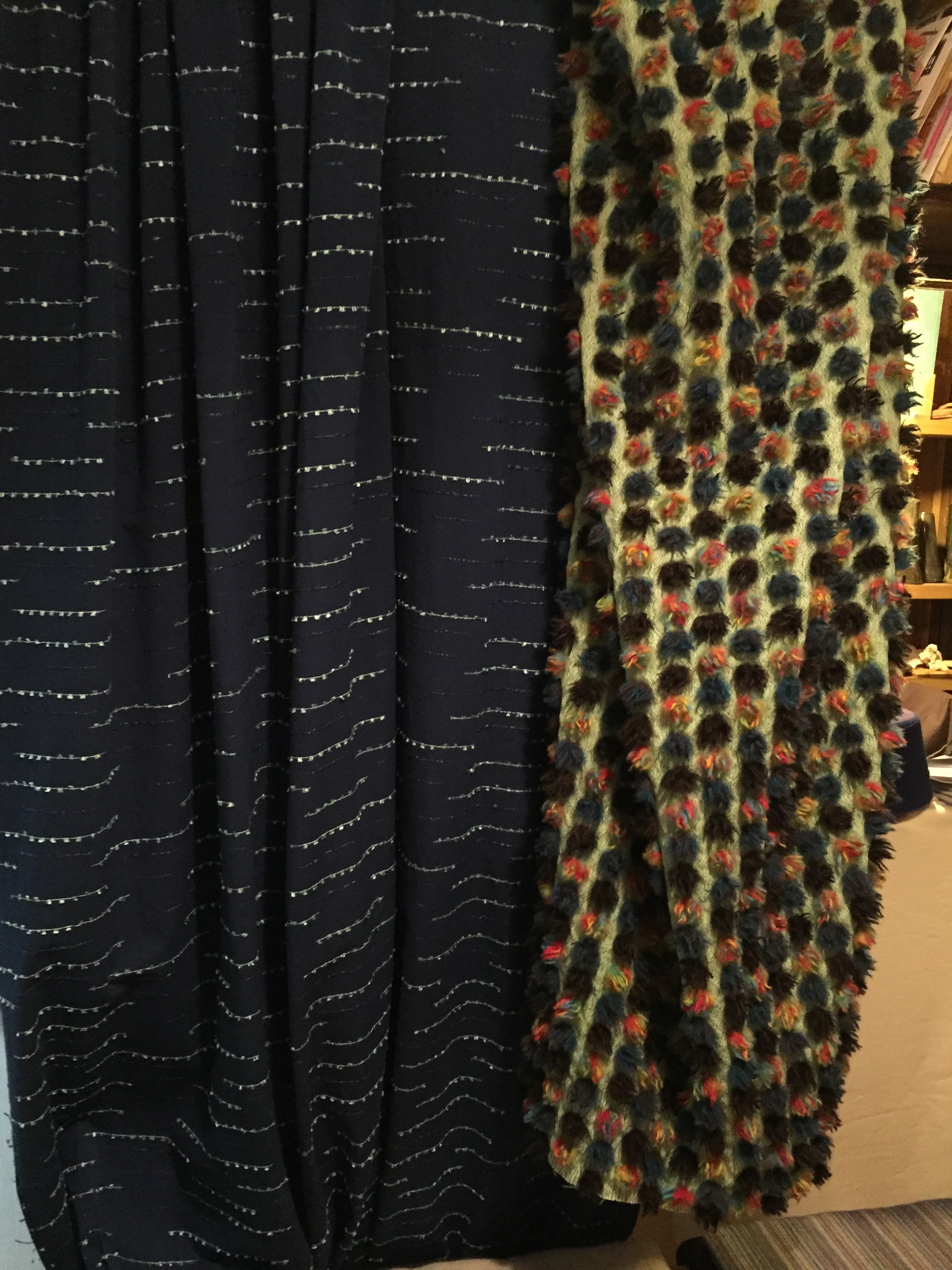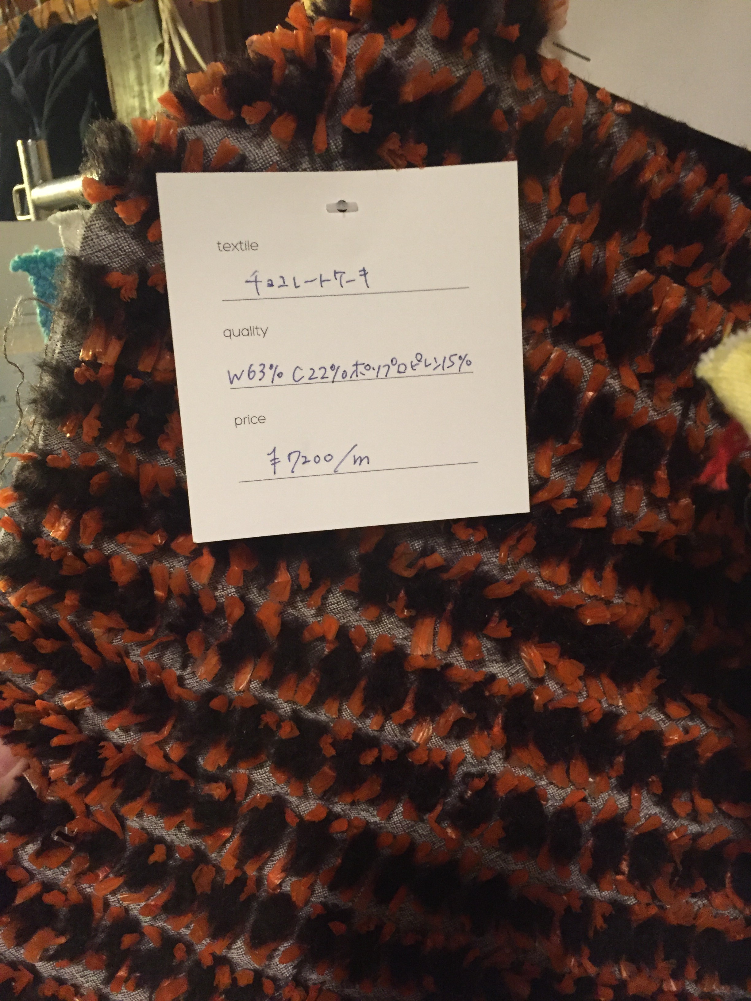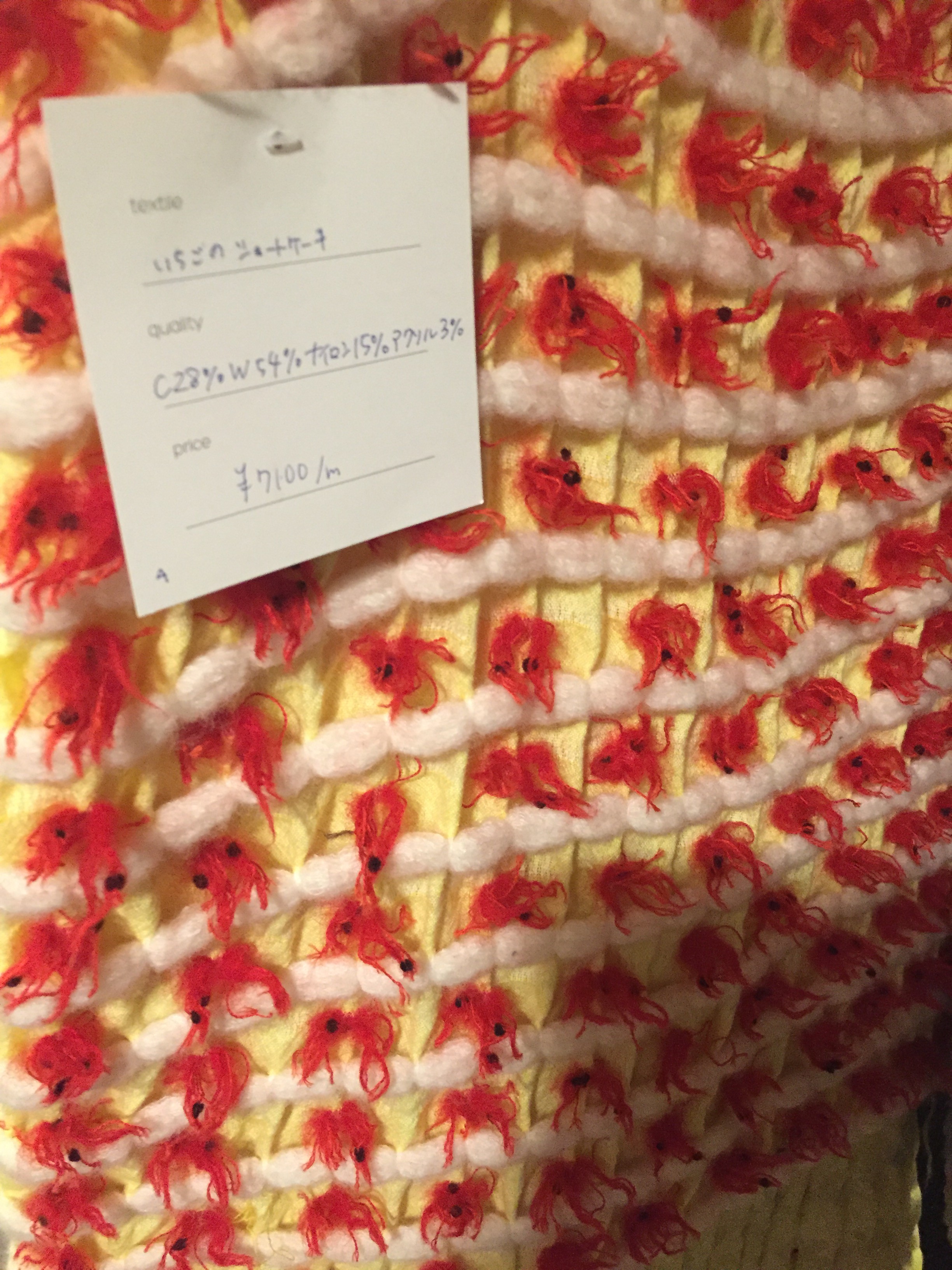 抹茶ケーキにフルーツタルト、白玉あずきです.どれも立体的で、これは生地なのか、、、?と思えるものばかりで、とても興味深いです.またこれからの季節にとっても暖かそうだなーと思ったり.生地を見ながら、5つの床プロジェクト の事や機屋さんの事等たくさんのお話をしました.