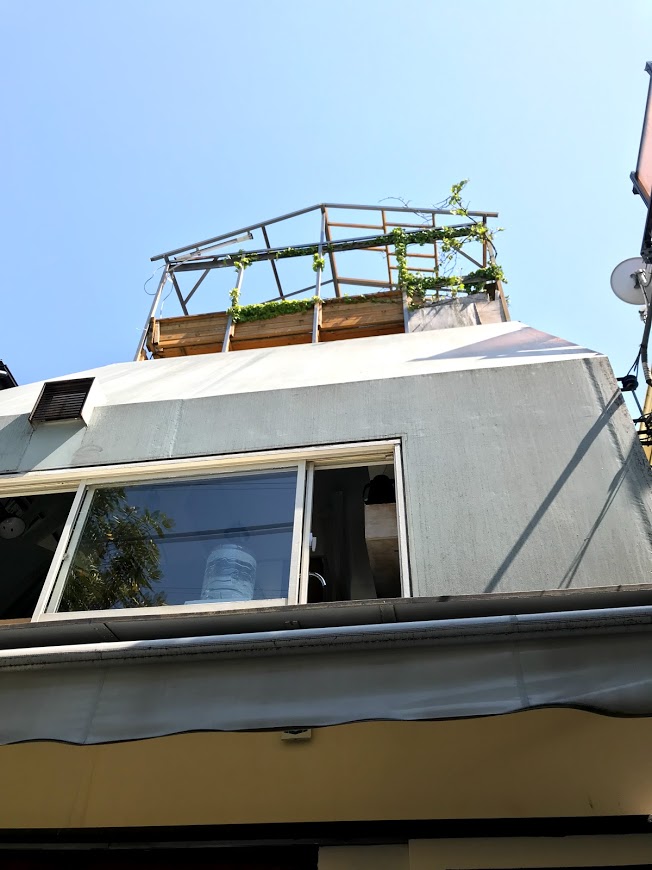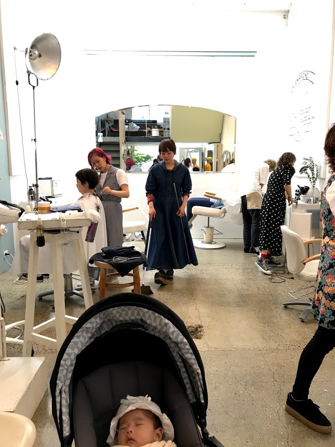 美容室の一角です.子の美容室屋上にフレーム小屋があったり、奥は大きな吹き抜けになっていたり、素敵な空間でした.