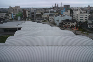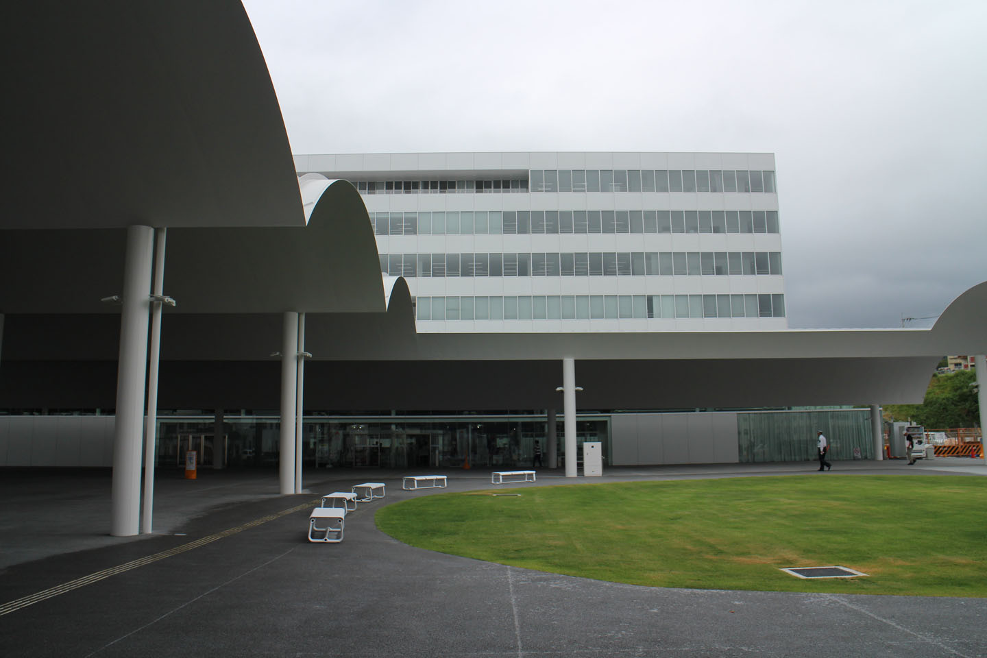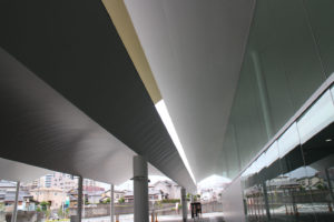 SANAA設計の日立市新庁舎も見てきました.庁舎の前に連続する円形の大屋根空間が広がってリズミカルな広場を作っています.この屋根びっくりする程薄かったです.