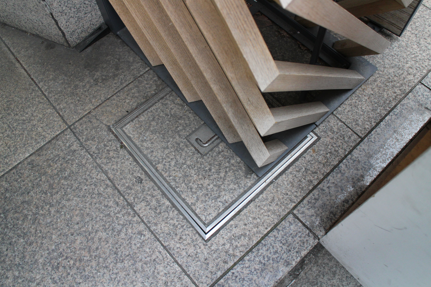 床面には、一本小さな角パイプが流れています.パネルを壁際の角材に立てかけるためのストッパーとして利用するそうです.