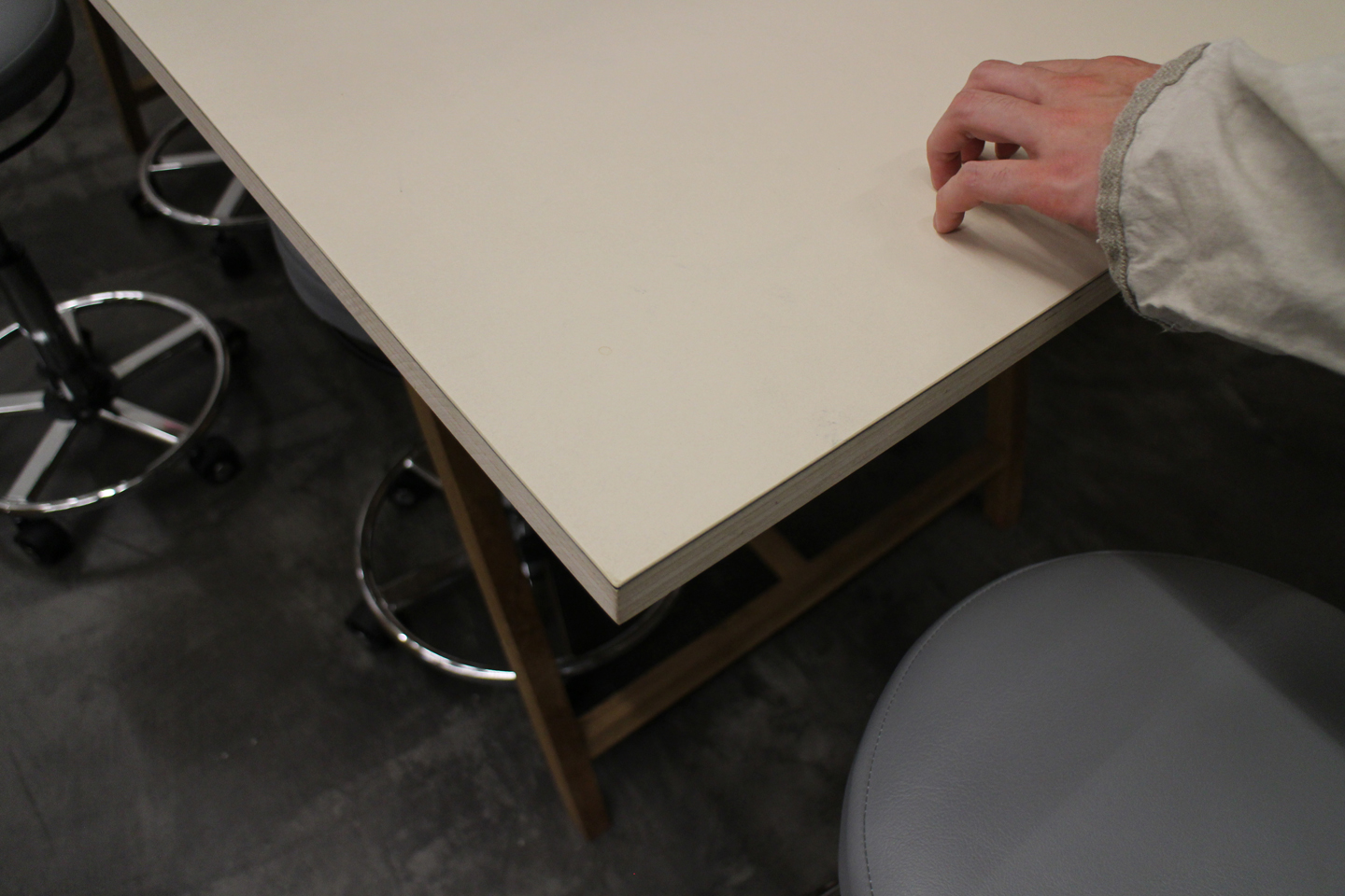 机はメラミンかな?と思っていたのですが、これは床に使うリノリウムなんだそうです.使い込むことで味が出てくる素材をチョイスしているので、これから使い込んでいって味が出てくるのが楽しみですね.
