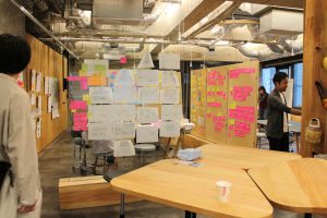 プロジェクトスペースは、プロジェクトの追い込み時期にわっと集まって作業をするような詰所のようなイメージとのこと.(WAR ROOM;戦略決定室と言うそうです.)