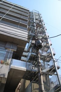 お隣は、SDレビュー2015鹿島賞を受賞した伊藤博之建築設計事務所の辰巳アパートメントハウス(塔の躯体)です.