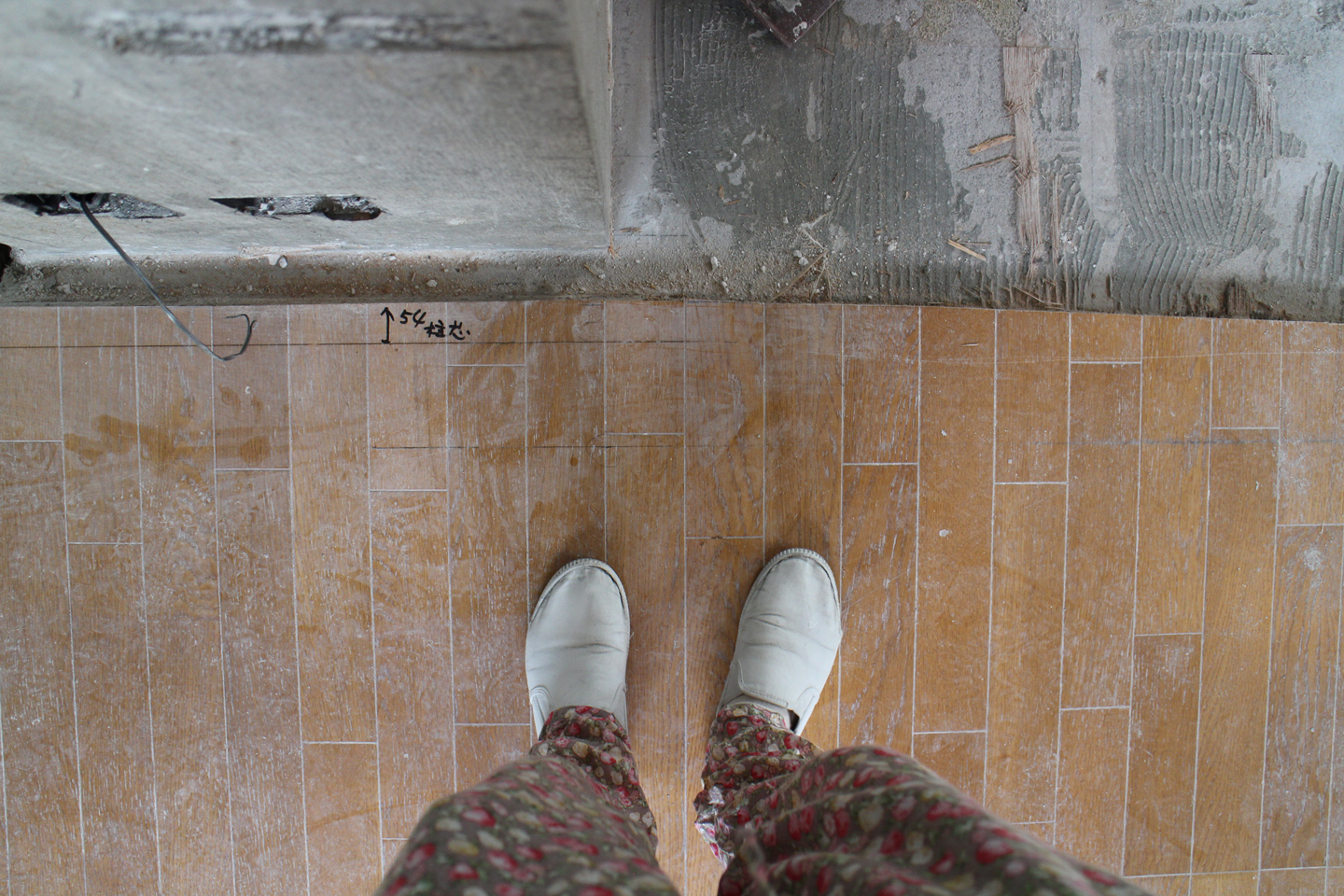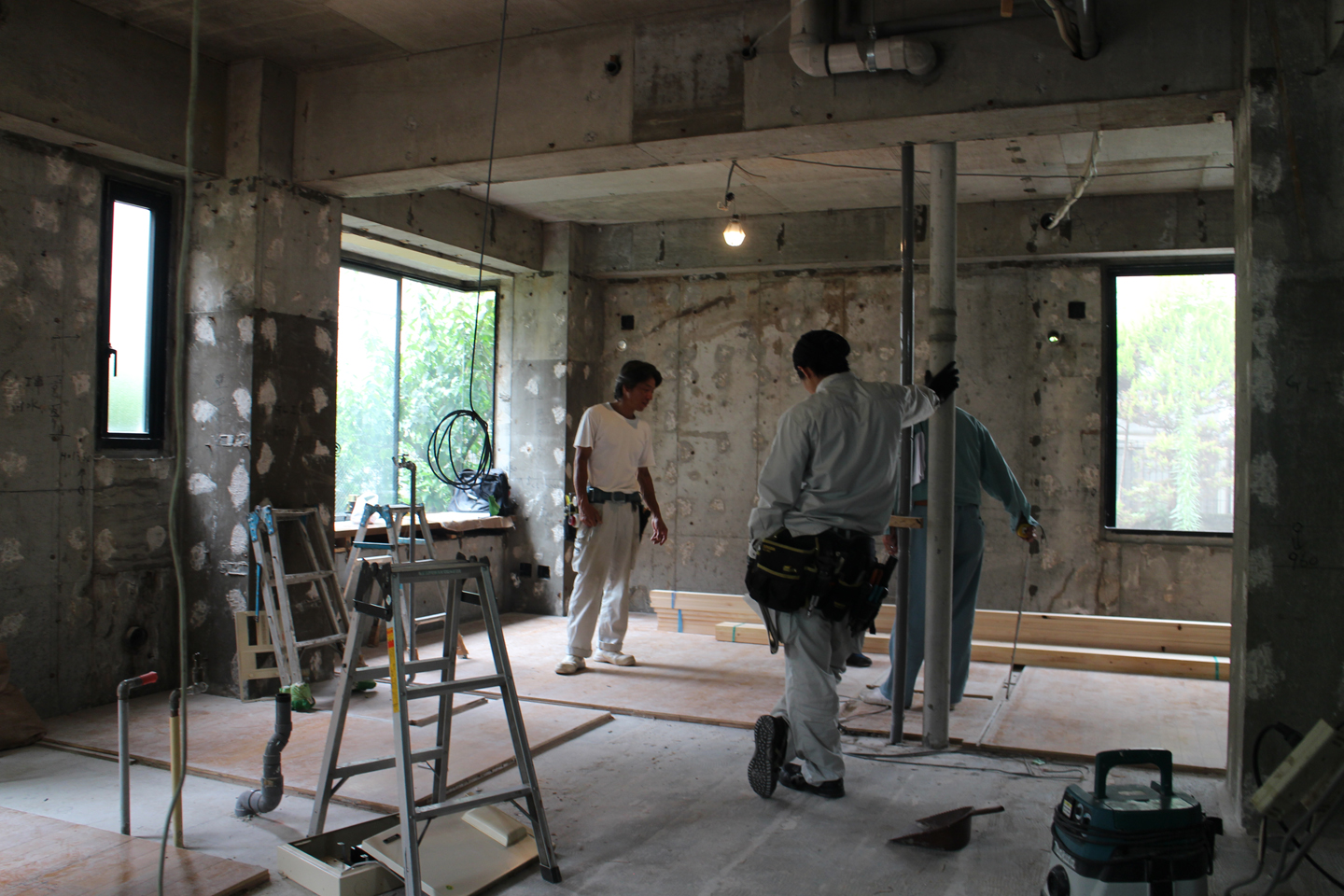 床に墨が打たれ、これから木工事、配管回しと進んでいきます.