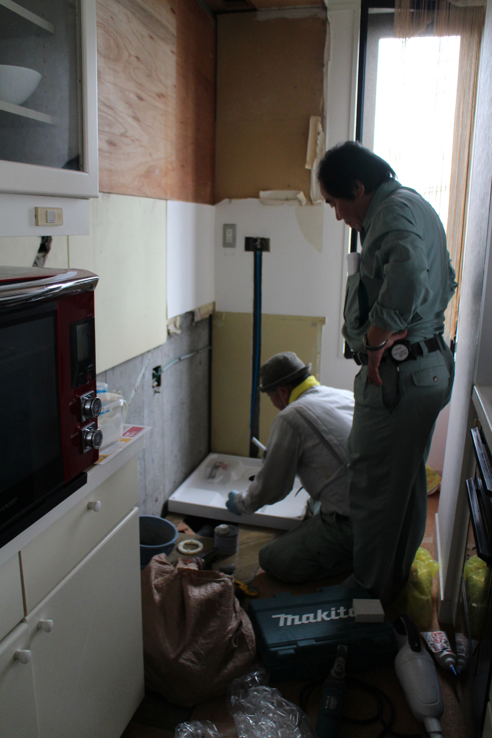 ご相談を受けていたお宅ではビルトインの洗濯機が壊れてしまったため、急遽、解体と洗濯機パンの設置工事だけを先行して行うということで、本日はパンの設置と電気、給排水の工事をしていました.