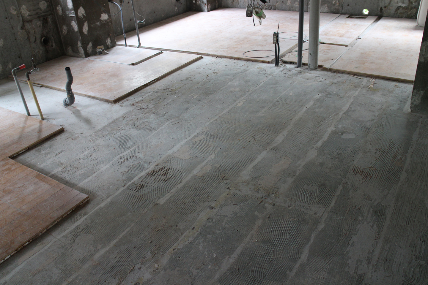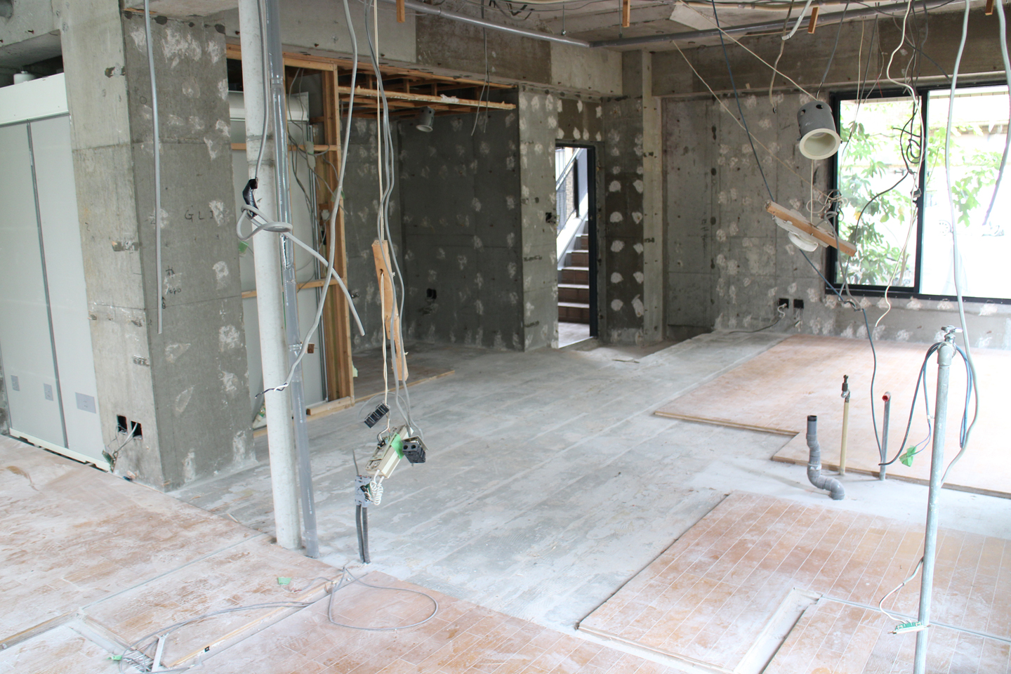 解体では、今回の計画でモルタル仕上になる箇所のみ、既存仕上を撤去したので、計画の床仕上の範囲、空間の大きさをよりイメージしやすくなっていました.