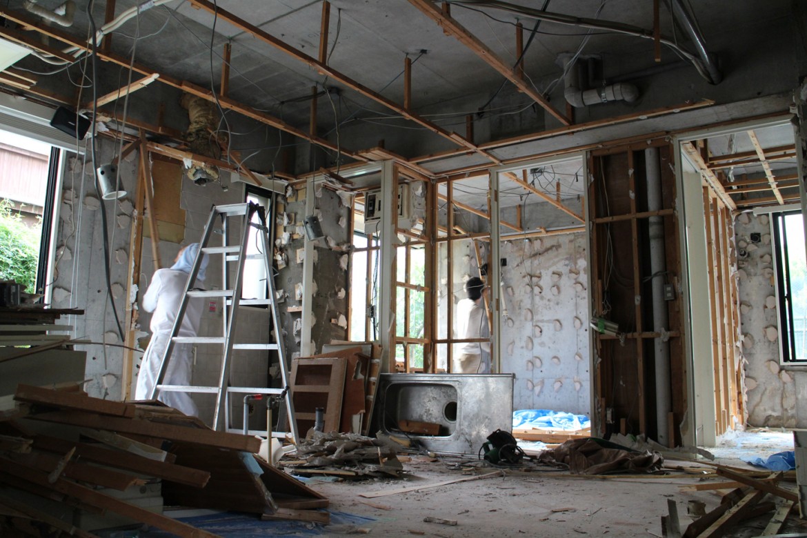 本日は二人で解体していた様で、室内ではいつもお世話になっているタモツさんがキッチンを解体している最中でした.かなり頑丈に取り付けられていた様で壊すのに苦労していました.