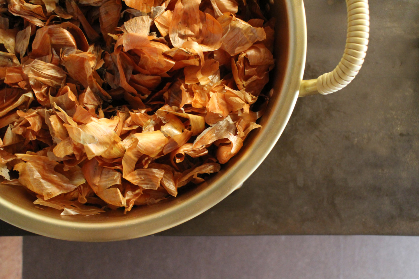 毎日のご飯で余った玉ねぎの皮を使って、染色しました.