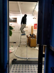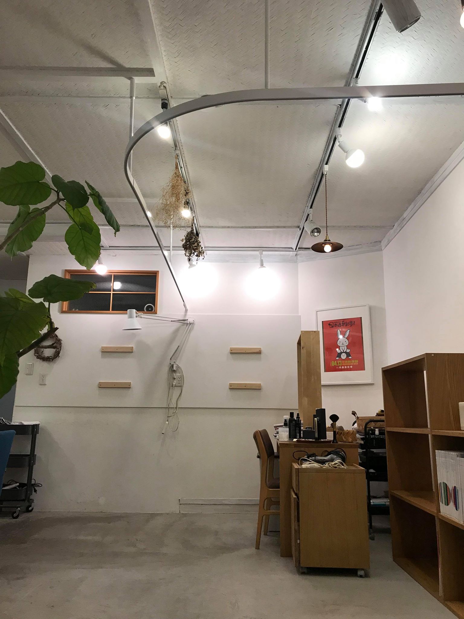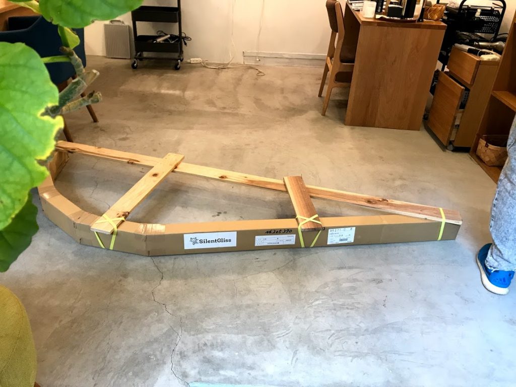 美容室の客席をゆるやかに隔てるカーテンレールとしてサイレントグリスのレールを発注し、前日に納品してもらいました.