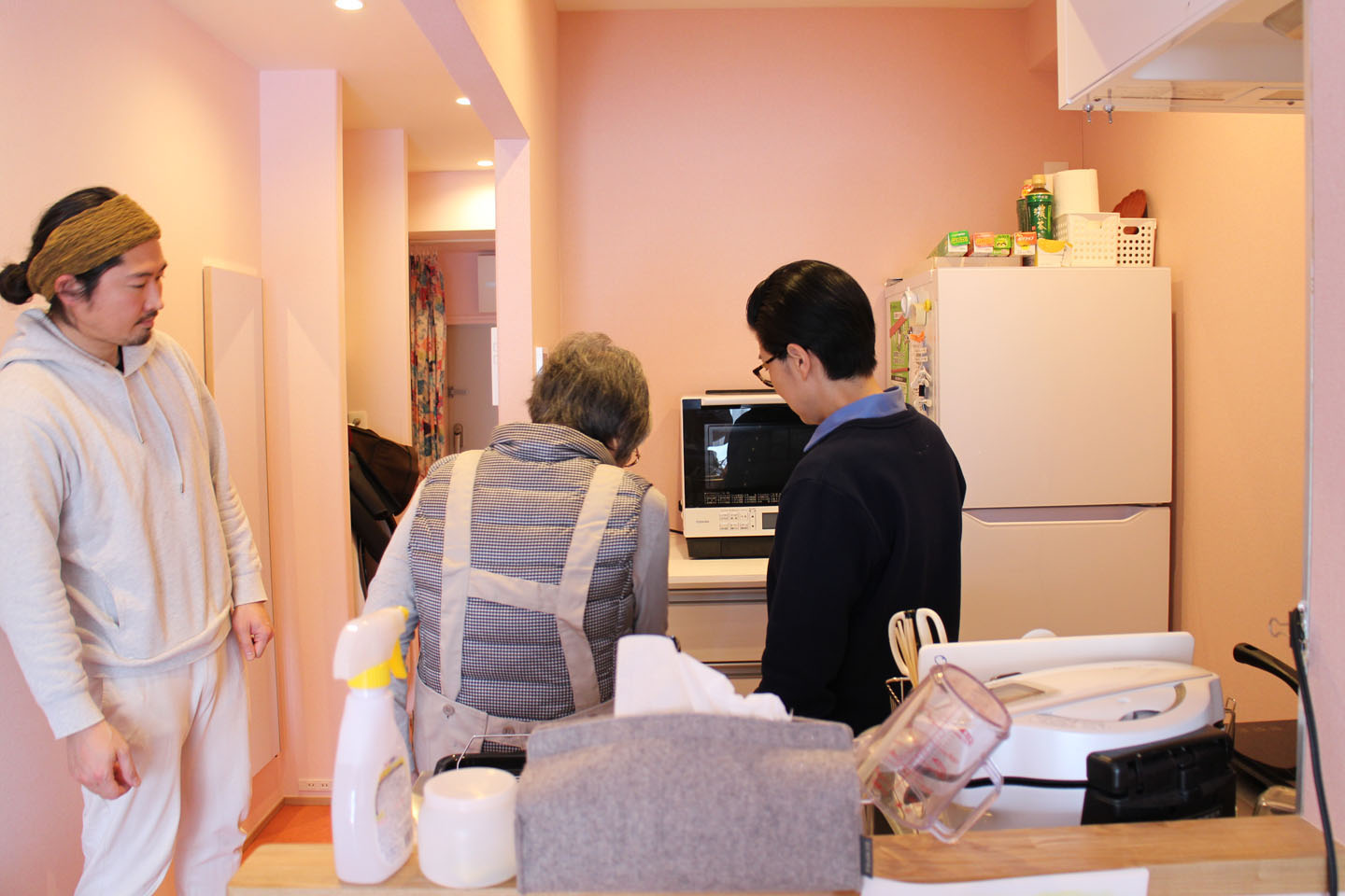 打合せ、施工作業中に八衣はみんなに可愛がられてVIP待遇です.