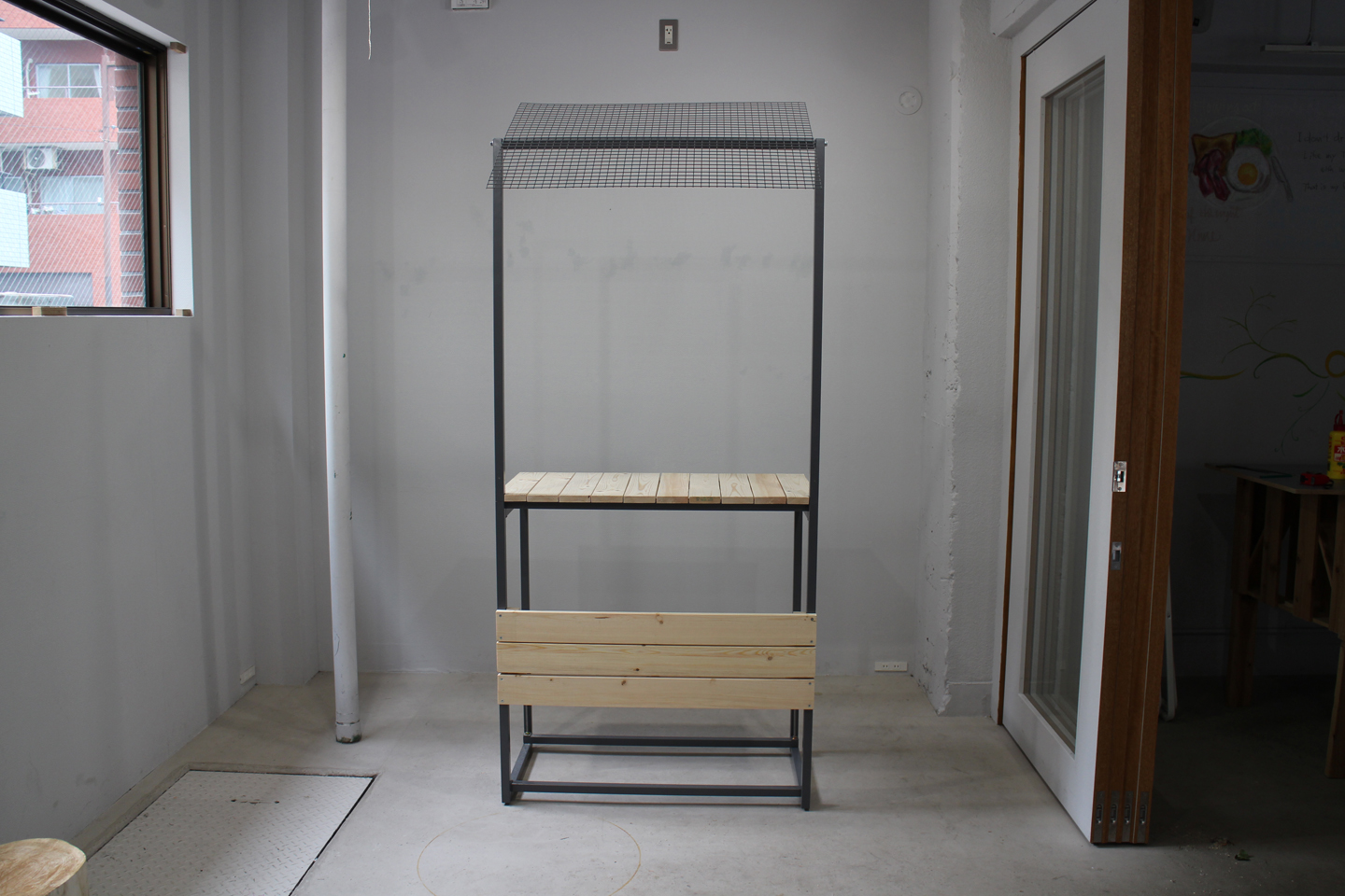 柱はそれぞれインロージョイントになっていて、ビスでとめて組み立て、屋根を付けて看板と天板を付けて完成です.