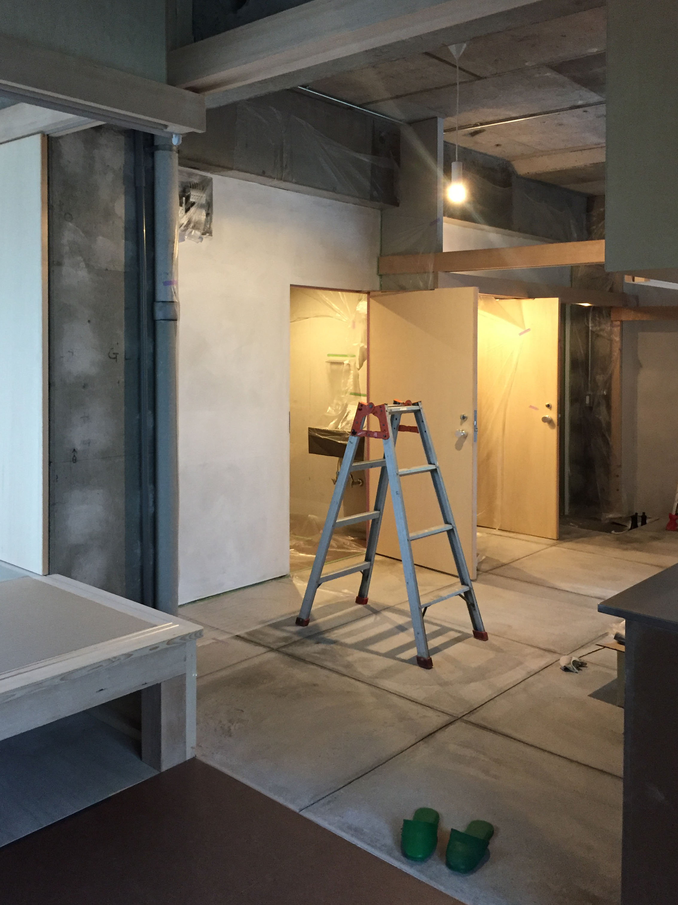 玄関回りのシーラー塗りがほぼ完了しています.引渡前の現場でお施主さんが一人現場で作業していて、設計が現場を見に来るってなんだか不思議な関係性だなと思いつつ、7月から何度も通った現場が引渡になるのは嬉しい反面、少し寂しいですね.工事は、もう手直ししか残っていないので、賑やかだった現場もとても静かになっています.といってもまだまだ現場感が抜けきれない住宅で、これから住んでいくために家具をDIYしたりと色々と手を加えていかなければいけないのです.やっとスタートラインです!