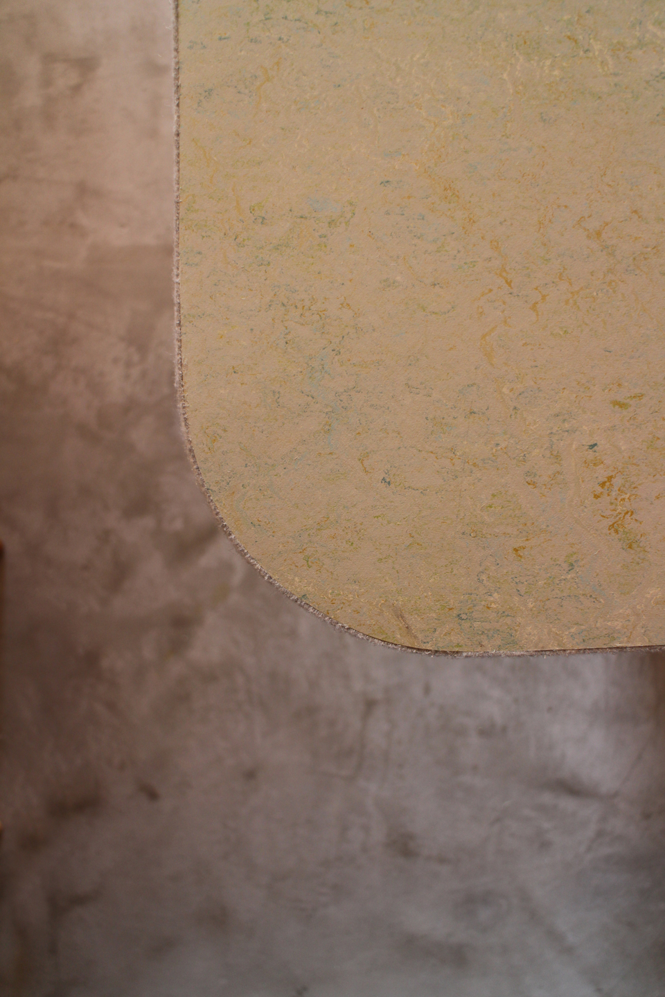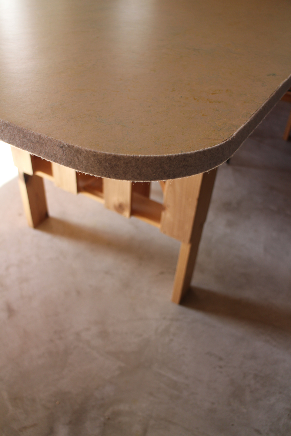 天板小口は杢調グレーのフェルトを接着しています.薄いグリーンのリノリウムにライトグレーが良く合います.