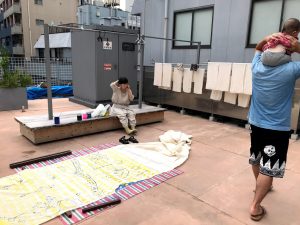 本日は、day un dayの中井さんが明祥ビル屋上で作業中です.