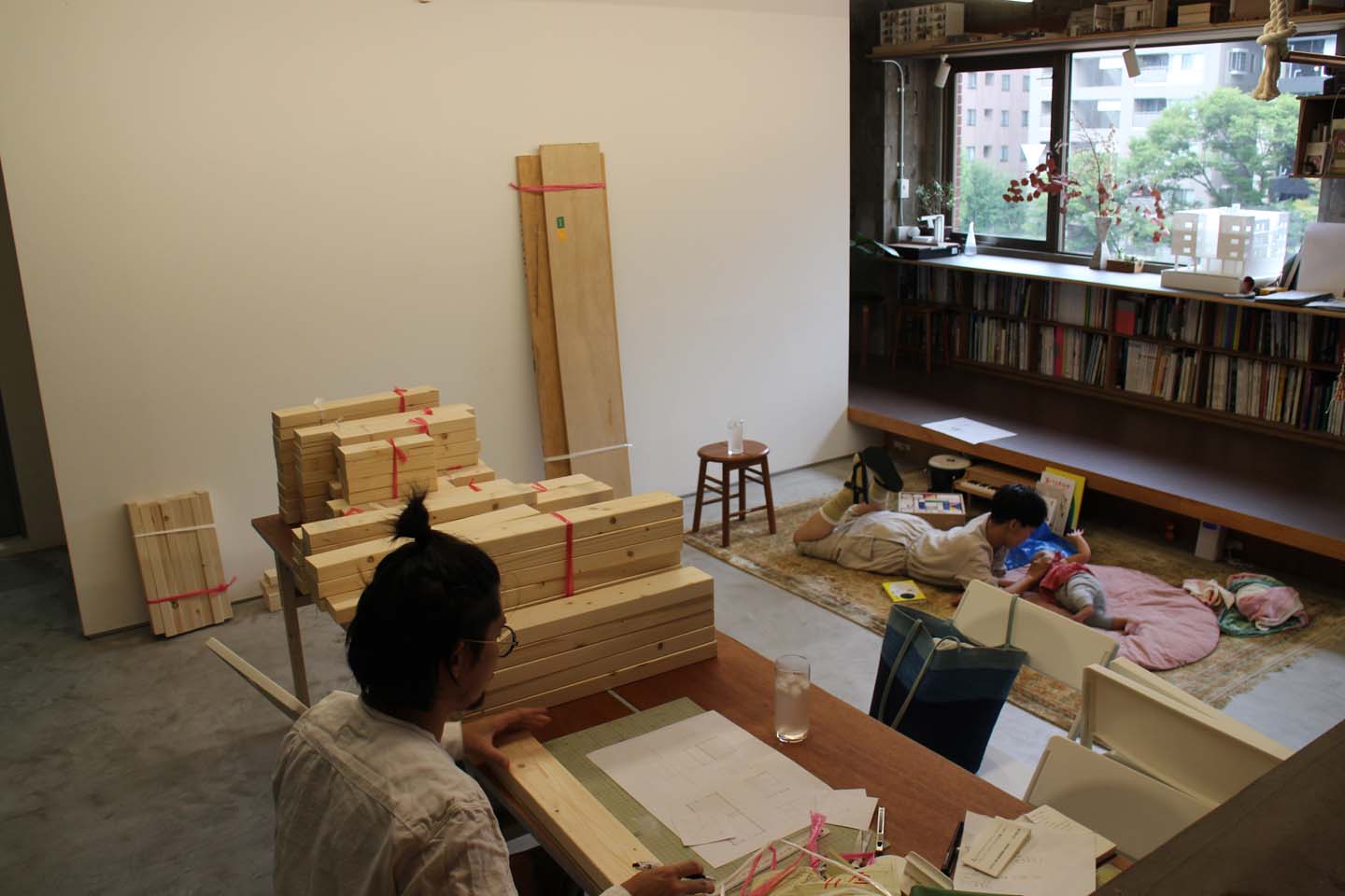 アトリエでは、最近寝返りが活発ですぐに座布団からはみ出してしまう娘のためにSoiの土間の使い方も色々と考え中.