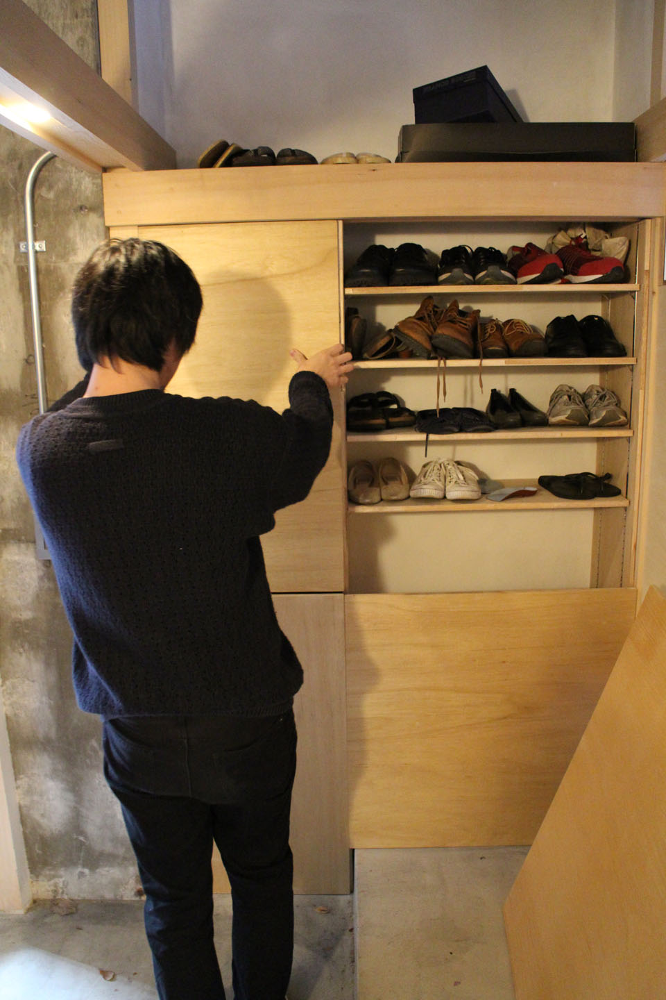 三枚扉を取り付けた所で、そういえば引手はどうするかまだ未定だったという事に気が付き、、、4枚とも付けてしまったら、開けなくなってしまうということで、とりあえず、三枚扉までで今回の工事は完了しました.扉の取付は、やっぱり施工難易度がいきなり上がるなーとあらためて実感しました.お施主さんが引手の検討、購入を済ませたら、次回施工する時にはやっと靴箱が完成?すると思います!