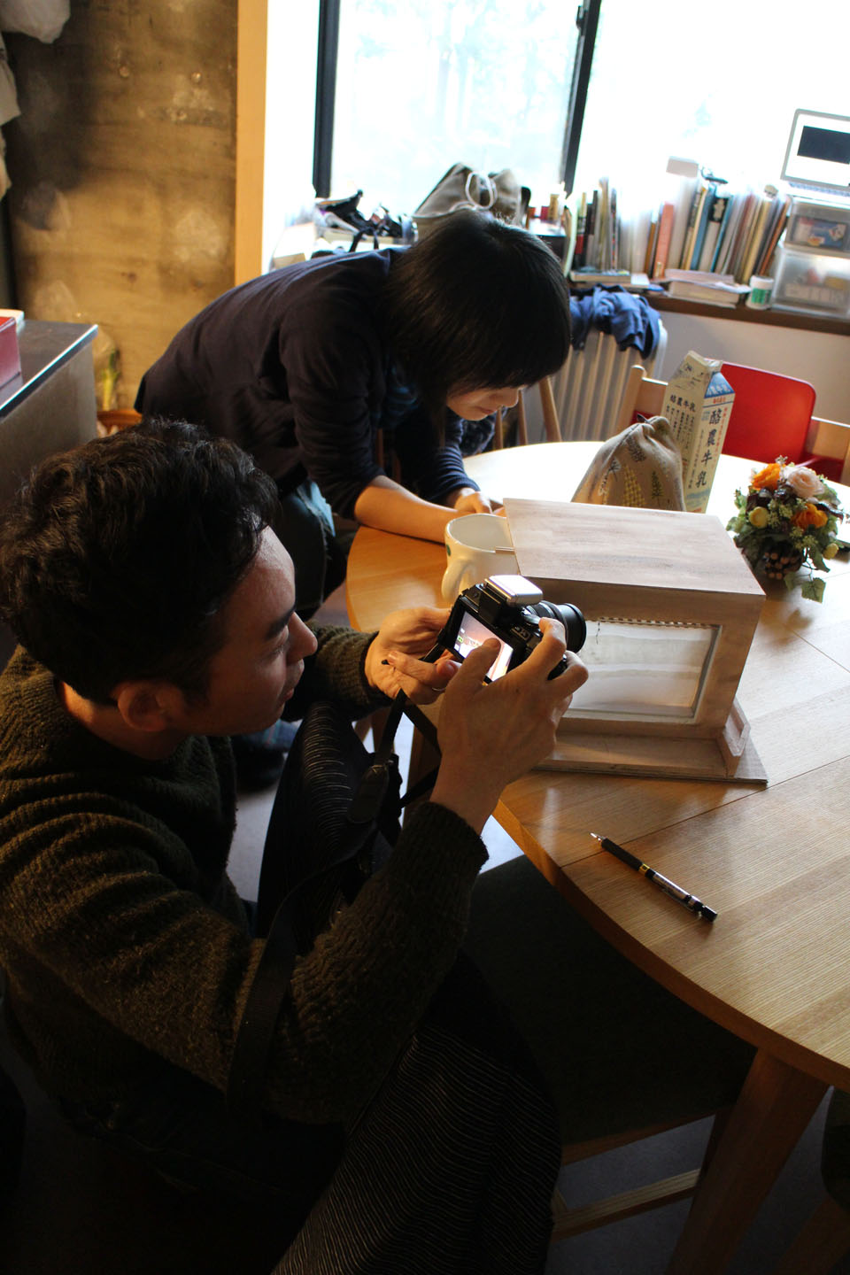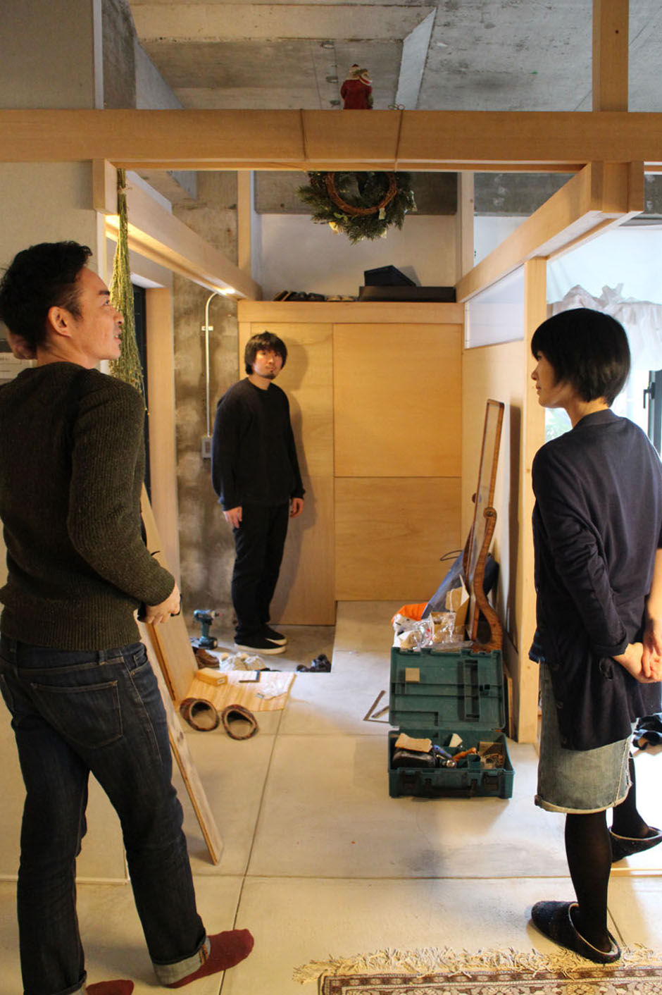 久しぶりに伺うと、リースが長押に飾られていたり、洗面台の所に小さな棚を取り付けていたりと、少しずつ、暮らしを編集しながら、楽しんでいる様子が見られました.次の家具工事に向けた模型も今回持参したので、それも見てもらいました.次は、いよいよカーテンです.先日やっとオリジナルカーテンが織り終ったそうで、とってもワクワクして待っています.