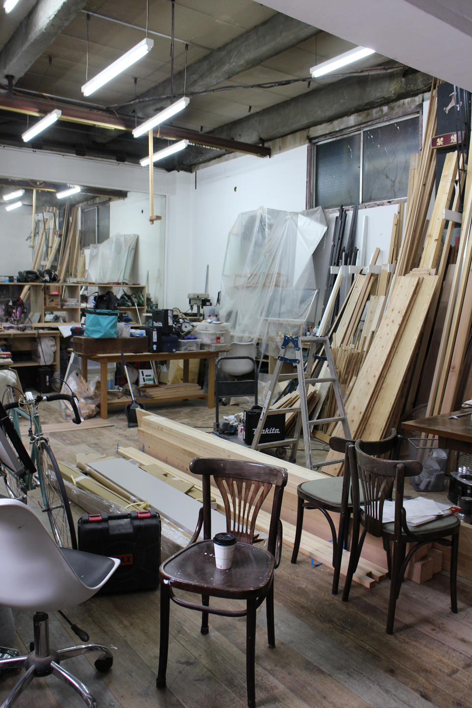 yohaku office & showroom + riyou project のフレームをお願いしようとご相談している大工さんと打合せをしに横浜まで行ってきました.今回ご相談している大工さんは、LIU KOBOの劉功眞さんです.我々の大学の先輩である設計集団アイボリィアーキテクチュアが拠点としているシェアスタジオの旧劇場で一緒にシェアをしている大工さんでいつか仕事を一緒にしてみたいなーとぼんやりと考えていたので、今回のフレームの構造はぜひお願いしたいなということで、相談をしてみました.