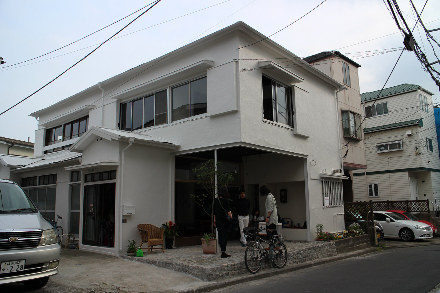 角地を抉り取るように半屋外化した空間の足下は野毛にある横浜市中央図書館の前の歩道に敷かれていたピンコロ石を撤去されるのを譲り受け、地域の方々とDIYで施工したそうです.