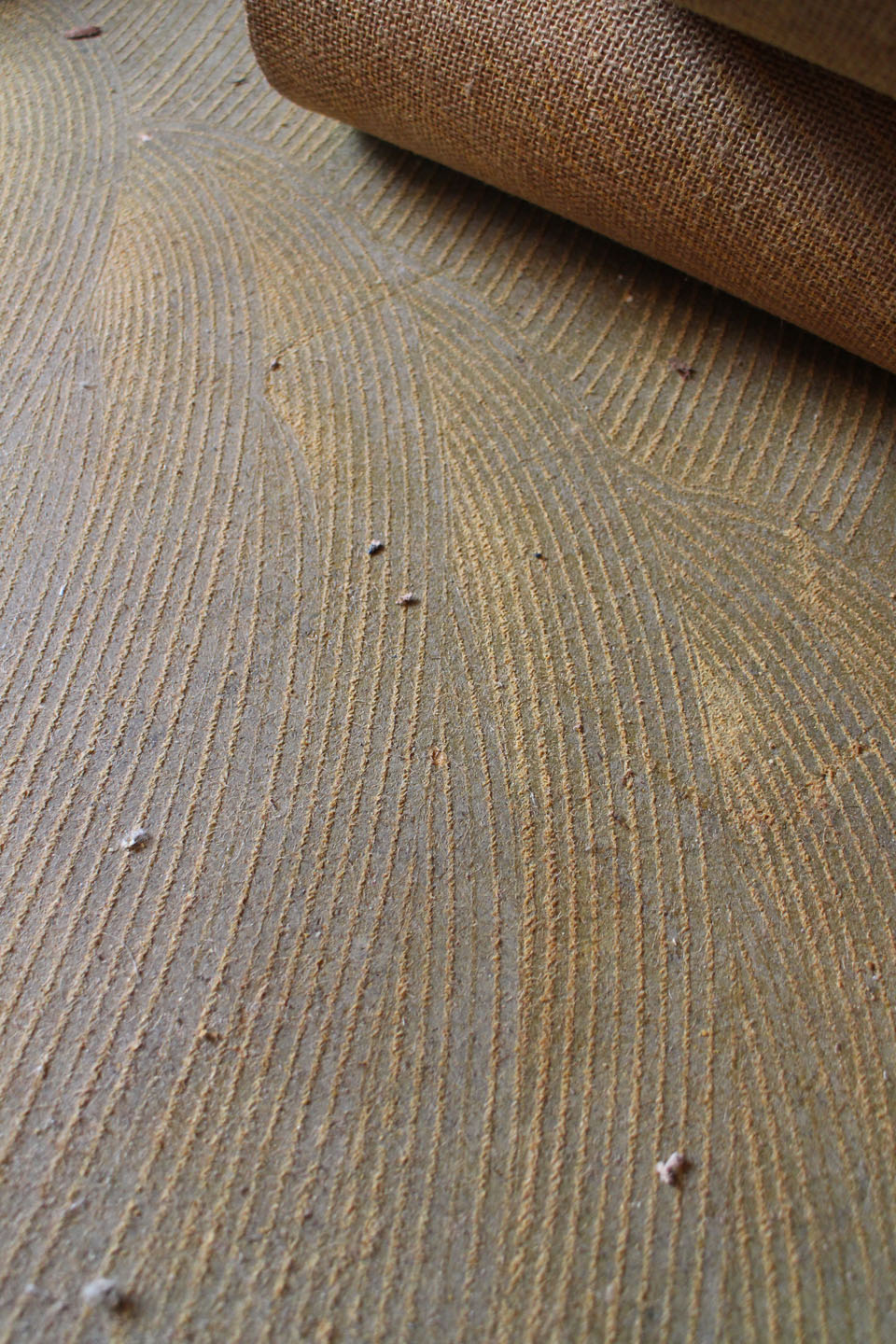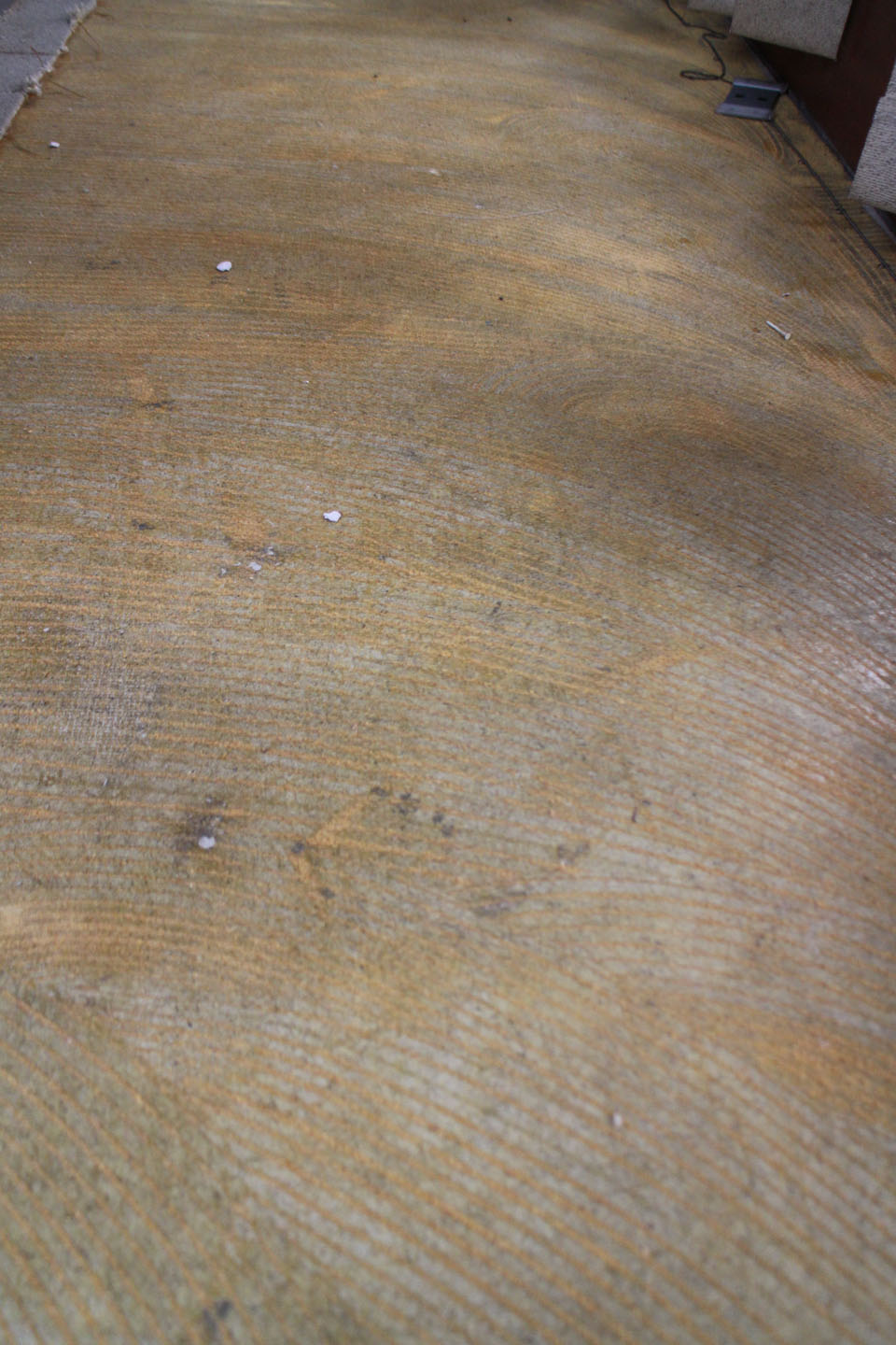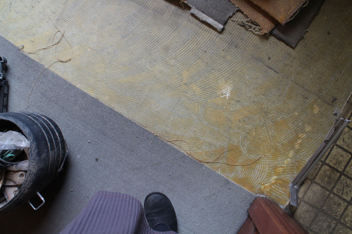 カーペットの裏面の茶色い麻のような素材が接着剤に貼りついて、剥がした後の床はとても綺麗な黄色の床になっていました.