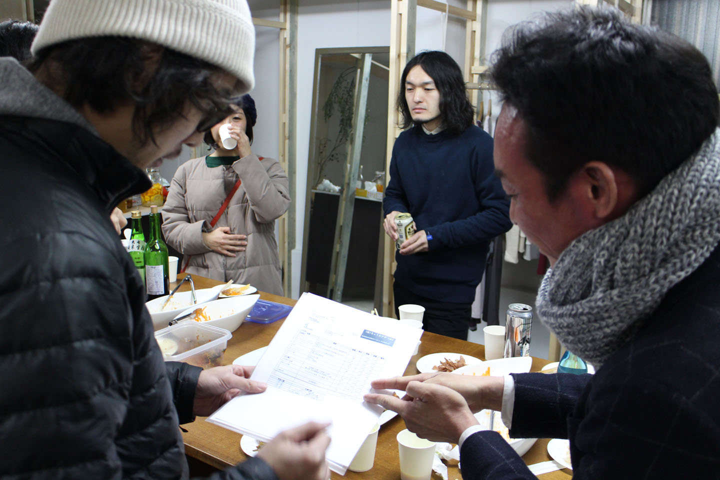 そして本日は、yohakuの皆さんとフレームを作ってくださったLIU KOBOさん、カメラマンの大塚敬太さん、そして5つの床プロジェクト のお施主さんの安田君、宮田織物の原さんと我々で忘年会です!