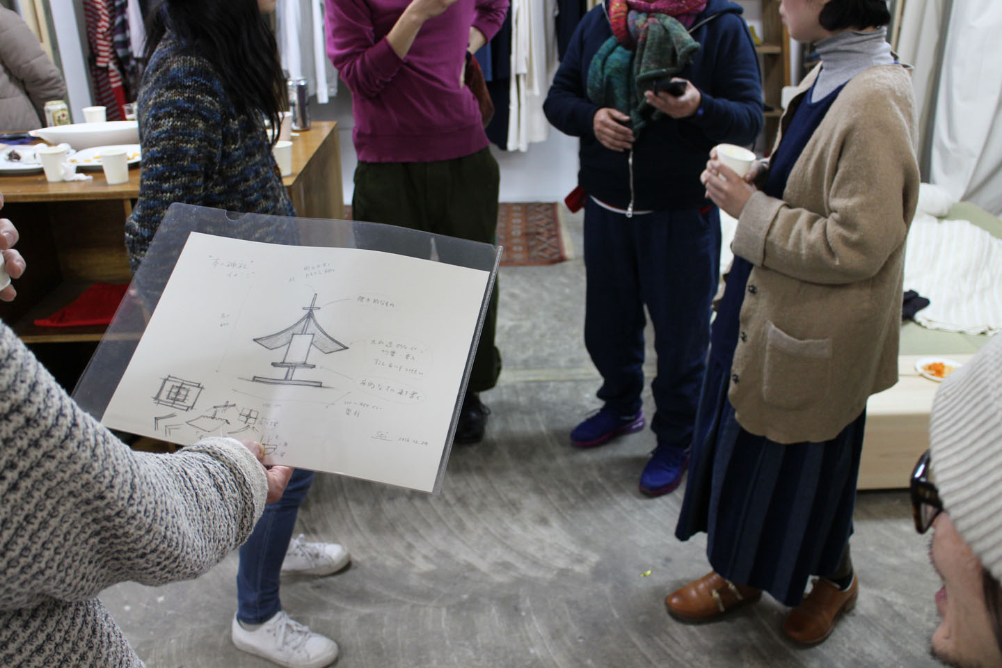 大和田がクリスマスイブの朝に描いた本の神社のスケッチで皆さんに今後の展開をご相談しました.今回の大掃除で帽子の型が出てきたそうで、植木鉢等に使えそうなので、我々も一つ頂くことになりました.